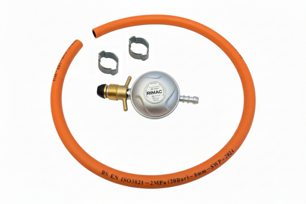Regulatorset komplett med regulator, slangklämma och 1m gummislang (Ø8 mm).