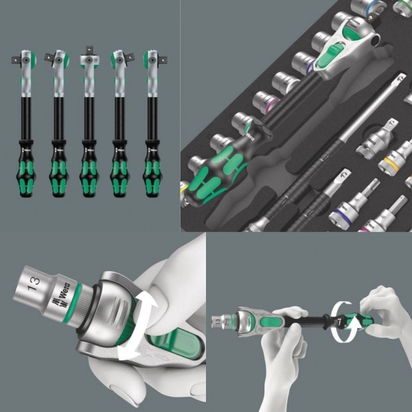 Slitstark skumgummiinsats; 2-färgad för snabb detektering av saknade delar; lämplig för Tool Rebel-verkstadsvagnen; bestyckad med 1 Wera Zyklop Speed-spärrhandtag 1/2" och 30-delars tillbehörssats.