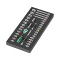 Slitstark skumgummiinsats; 2-färgad för snabb detektering av saknade delar; lämplig för Tool Rebel-verkstadsvagnen bestyckad med 1 Wera Zyklop Speed-spärrhandtag 1/4" och 36-delars tillbehörssats.